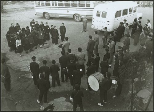 球磨・葦北・八代郡からもバスで八代駅に集まり、各学校の先生たちの訓辞やブラスバンドの後輩たちが心をこめて奏でる音。涙がほとばしる。