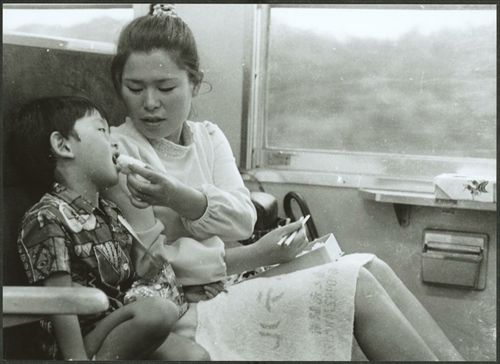 温泉に浸りおいしいお弁当をお母さんと喰べる坊やの楽しい思い出。